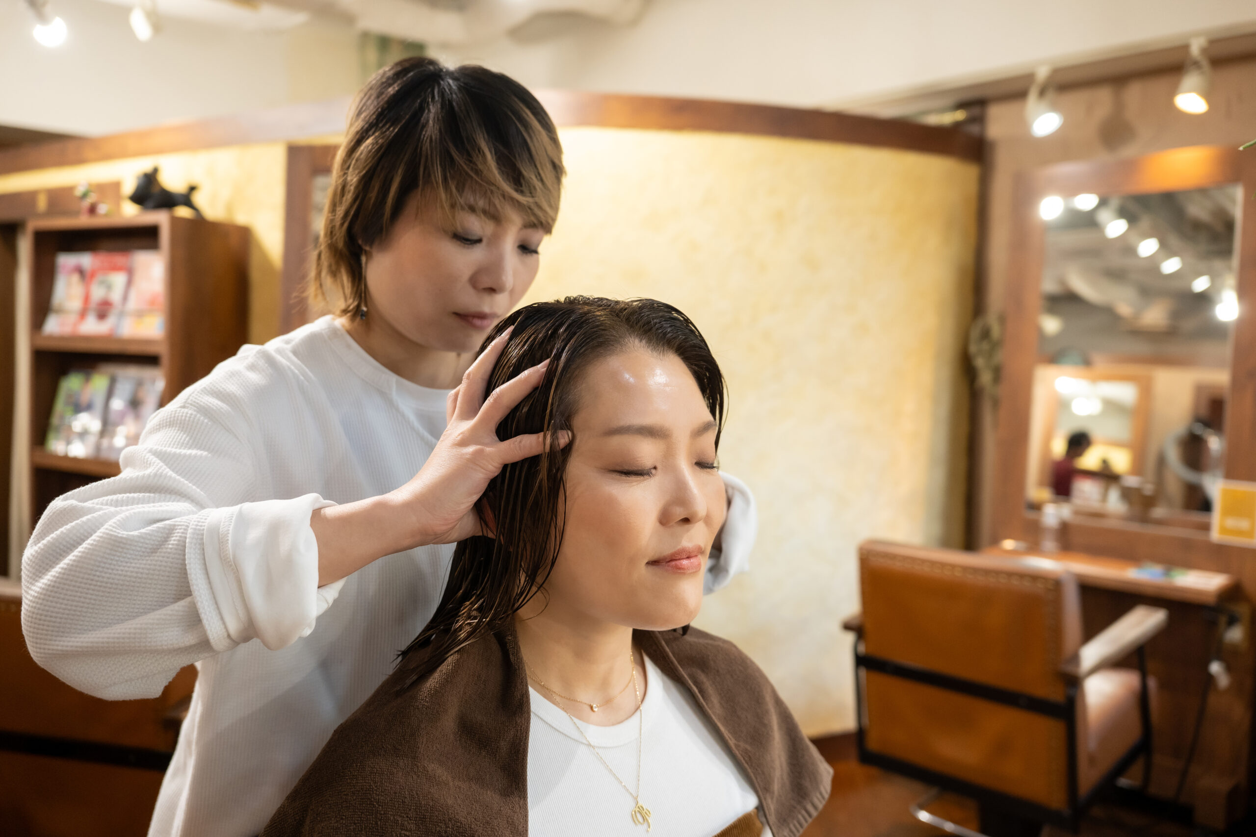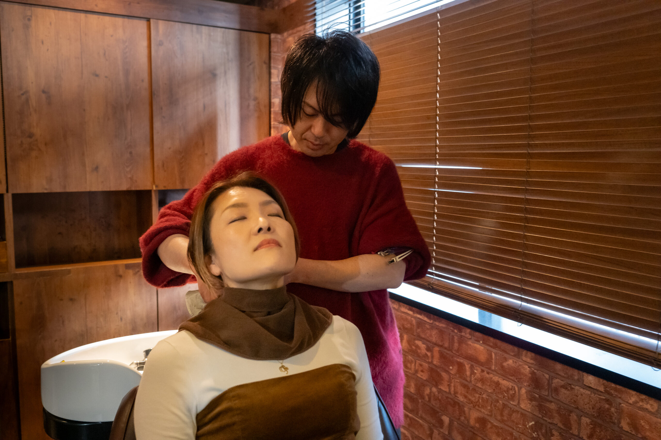 As the treatment nears its final stage, a head massage is performed. The stylist carefully massages the scalp down to the décolletage, helping to relax the scalp and relieve tension in the neck and shoulders. Finally, the hair is styled. There are six types of oil to choose from, and despite only using a blow and dry without a hair iron the hair achieves an incredible shine. This is truly remarkable. Additionally, all the hair care products used in this salon are salon-exclusive, attracting customers who specifically seek them out.